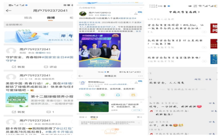活动开展期间,马睿通过主题班会、宿舍走访等方式开展涉国家安全法律法规的宣传教育,组织全体同学在线上学习“全民国家安全教育公开课”。同学们通过关注微信视频号“@中国大学生在线”,在微博参与“2023全民国家安全教育”活动专题话题接力,参与互动。此外,各班组织开展了“反邪教警示教育进校园”主题团日活动,提高了同学们防范邪教的意识和能力。