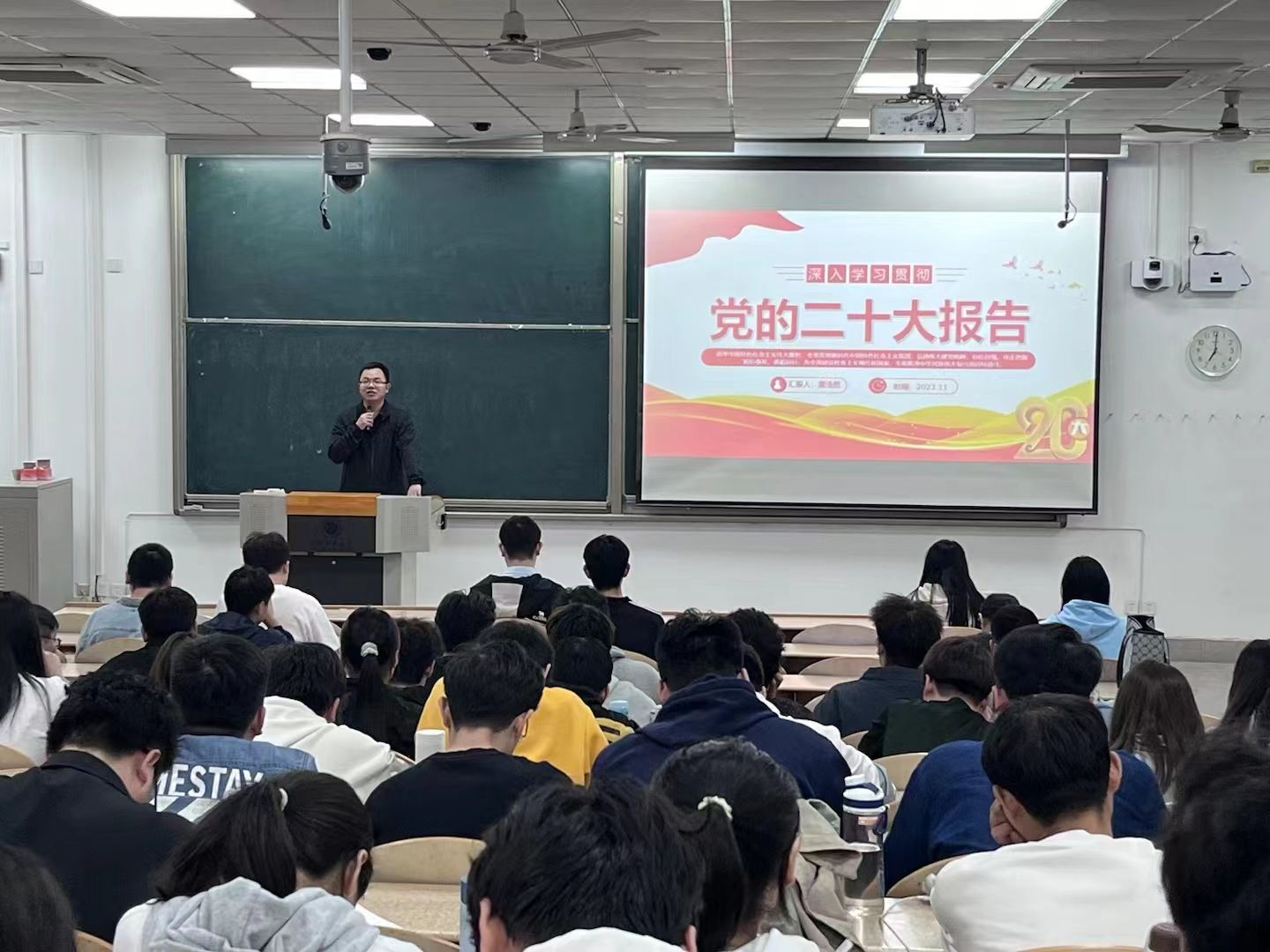 112日晚,永利23411集团第67期入党积极分子培训班第学习贯彻党的二十大精神”于教1-104开讲,学院学生第一党支部书记雷浩然150余名党课学员进行授课。