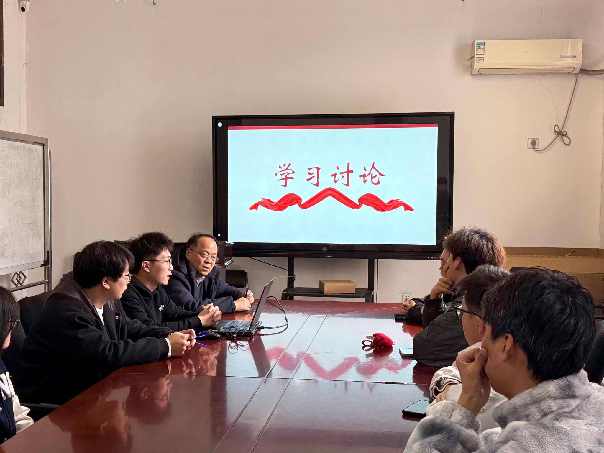 在交流讨论环节,张老师以“积极阅读文献,加强学科建设”为主题展开论述,强调文献阅读对科研创新的重要性,鼓励同学们积极参与课题研究,主动探索关键技术,为学科发展贡献力量。研究生党员李同学表示:“张老师的讲话让我深受触动。今后科研中,我会更注重查阅权威文献,保持学习主动性”。