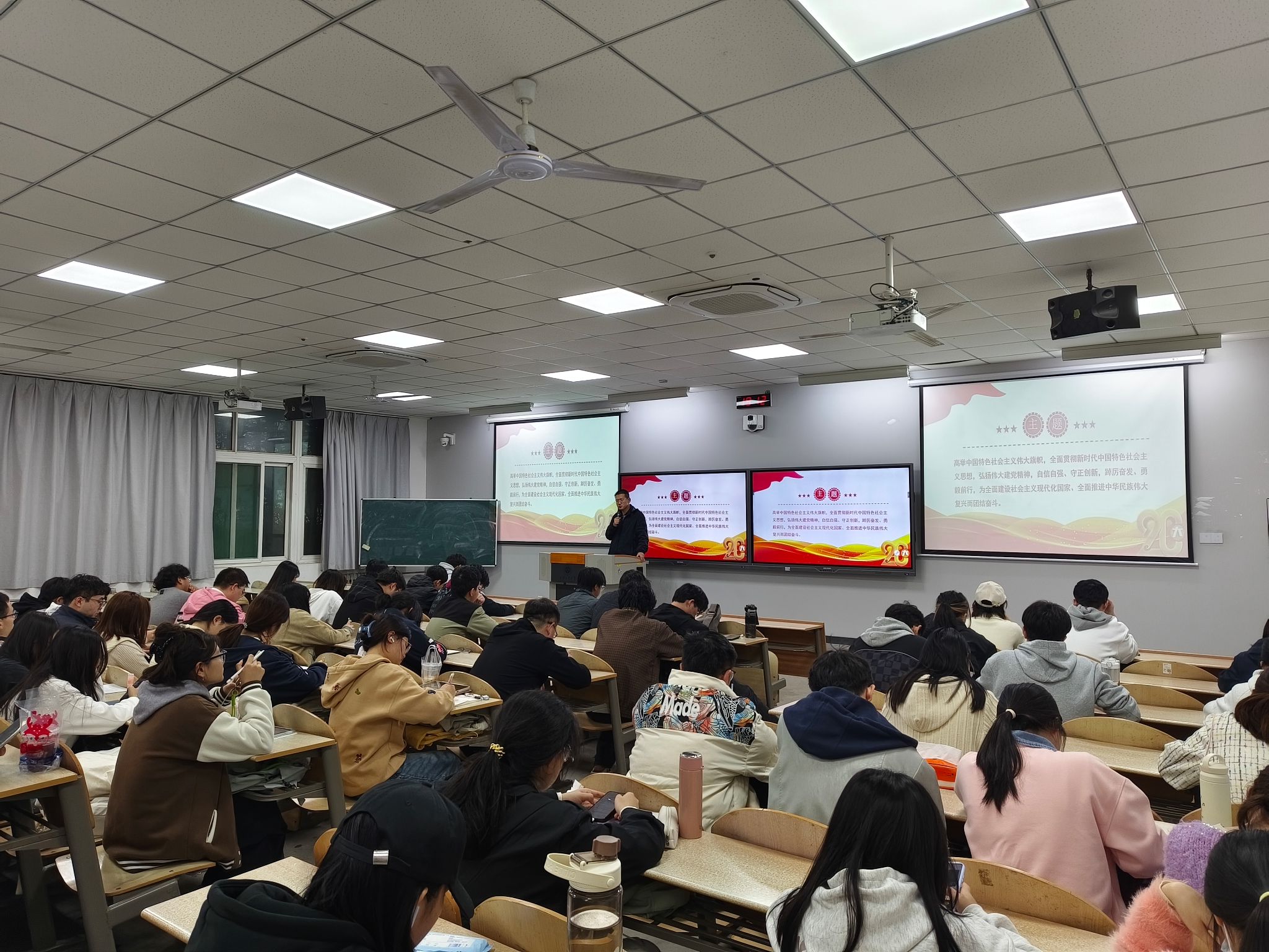 乔海东以“深入贯彻党的二十大精神”为题,他从关键时刻召开的十分重要的会议、党的二十大报告的主要内容核心要义、全面学习贯彻党的二十大和二十届二中、三中、四中全会精神等方面进行全面解读。他希望同学们提高政治站位,衷心拥护“两个确立”,增强“四个意识”,坚定“四个自信”,做到“两个维护”,深入学习宣传贯彻党的二十大精神,认真学习研读原文,准确把握精神实质,深入了解其内涵和意义,弘扬伟大建党精神,把学习党的二十大和二十届二中、三中、四中全会精神精神的成果转化为奋进新征程、建功新时代的实际行动。