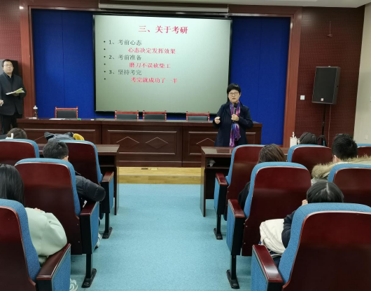 会上,两位老师首先就期末考试、四六级考试、研究生考试等进行考风考纪教育,督促同学们认真复习,诚信备考,保持良好心态,遵守考试纪律,并宣读《永利yl23411集团考场规则与考试纪律管理办法》。接着,强调严格按照学校疫情防控要求做好每日晨午检打卡,不必要不外出,提醒同学们及时打扫宿舍卫生,做好冬季传染病预防工作,尤其要预防水痘、出血热等高发疾病。要严格履行请销假制度,生病要到正规医院就诊,遵医嘱配合治疗。外出及求职要注意人身、交通及财物安全,谨防电信诈骗。鼓励考研的同学以积极平和的心态备考、应考,做好考前准备,坚持不懈,并预祝同学们考出理想成绩。杨利红对大四毕业班学生提出两点要求:一是要端正考风、严肃考纪,守住诚信底线,坚决不碰作弊红线,保证顺利毕业。二是要树立托底意识,先就业再择业,规避就业难风险;加强同学间的沟通交流,共享求职经验,相互促进带动,实现共赢;要善于包装自己,不断提升就业能力,收获更高质量的就业岗位。