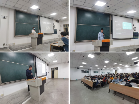 交流会上,两位同学从学科知识竞赛、理论方案竞赛以及实物制作竞赛三大类竞赛展开,为同学们讲述了竞赛中容易遇到的问题。首先邵睿康同学对“互联网+”大学生创新创业大赛进行了讲解,介绍了以互联网为方式对于农业、制造业、文化创新、社会服务等领域进行创新创业的项目,并且介绍了以“厨余宝”为代表的往期优秀作品。结合近期的“挑战杯”竞赛项目,为大家介绍了“大挑”和“小挑”,针对同学们近期的竞赛准备提出了宝贵的建议。随后张维佳同学介绍了“蓝桥杯”,它主要涉及软件开发,程序设计,应用开发等领域,要求对数学、光学、电学、机械设计、编程语言等学科知识有一定的储备,他还从备赛和竞赛方面为大家分享了自己在比赛中遇到的问题和解决方法等。
