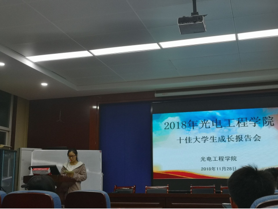 为充分发挥先进典型的示范和引领作用,展示我院学生积极健康向上的精神面貌,弘扬青春正能量,我院于11月28日晚19:00在工6-402举办了永利23411集团十佳大学生成长报告会。荣获2018年永利yl23411集团十佳大学生称号的我院2016级测控技术与仪器专业雷晓明同学及2017、2018年级共计140余名同学加了此次活动。