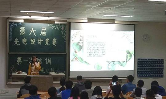 3月27日,为促进第六届光电设计竞赛理论方案征集的顺利进行,我院科协在教2-206开展了第六届光电设计竞赛第一次培训活动。本次培训由光电科协主席郭胜飞主持,技术部王丹妮讲解。科协各干事及所有参赛人员参加了此次培训。