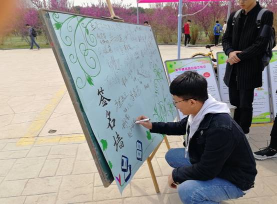 上午9点半,青年志愿者们在布置完毕活动现场后,利用课间和中午时间对过往学生发放结核防治宣传物品,让同学们更加深入的了解结核病相关知识及预防措施。活动中,光电青年志愿者前期准备的签名墙吸引了同学们的注意力,他们纷纷来到签名墙前,签上了自己的名字,同时也留下了防治肺结核,从自身做起的承诺。另外,校医院的老师们为支持活动的开展,无偿为同学们进行了血压测量,吸引了更多同学参与到活动中来。