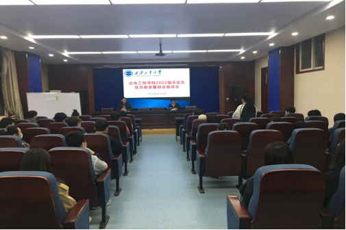 会上,雷浩然向与会党员介绍了目前学院就业的情况,分析了当前就业的严峻形势,并提出本次座谈会主题:就业我先行,党员做模范。