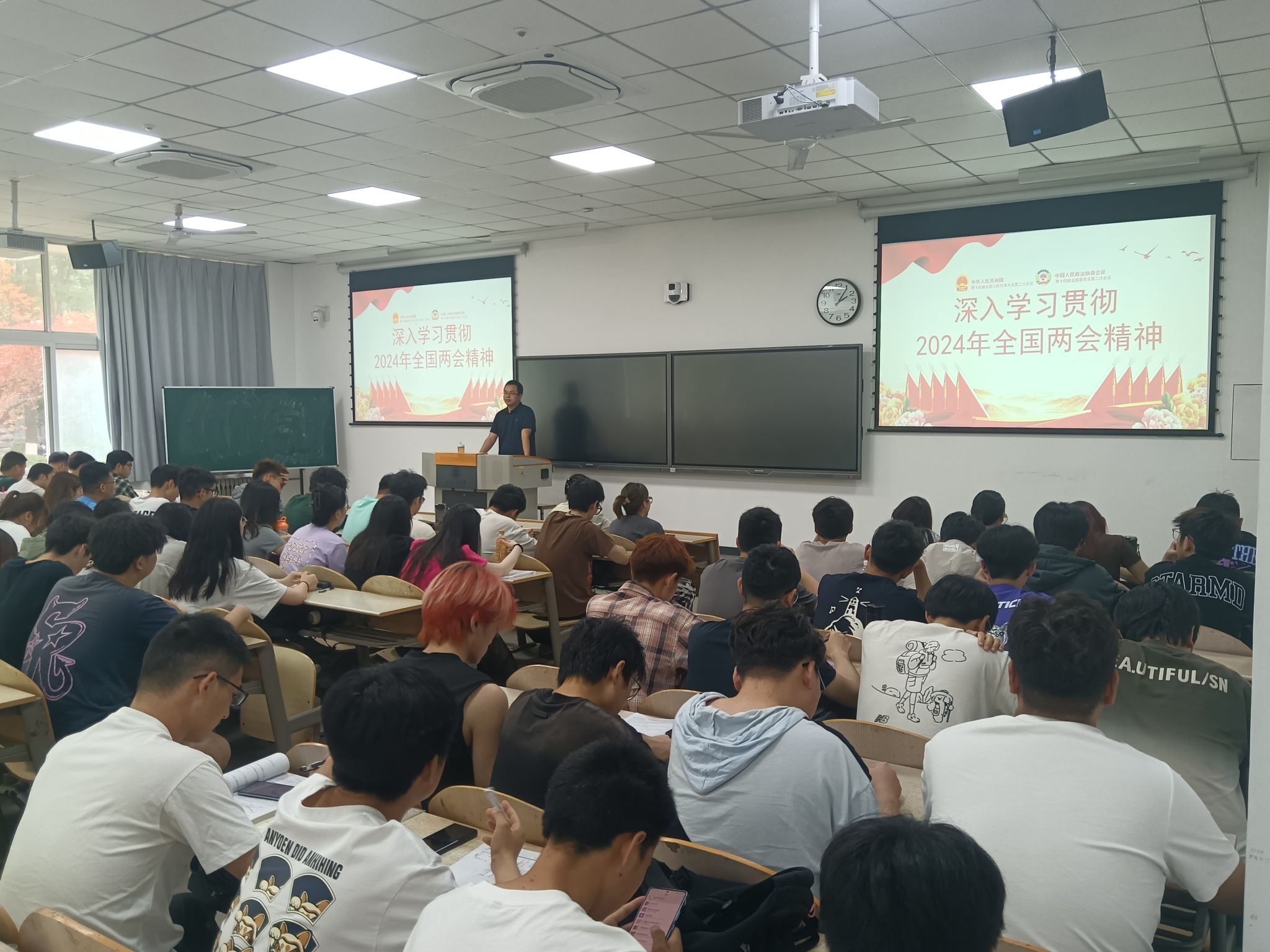 为深入学习贯彻2024年全国两会精神,增强大学生的使命感和责任感,引导大学生将个人理想与国家发展紧密结合,全面把握全国两会的精神实质,5月9日,永利23411集团在教2-103组织2022级学生开展学习2024年全国两会精神活动。