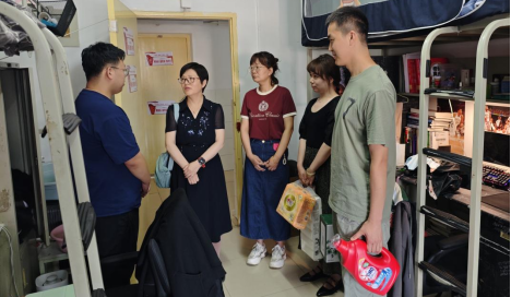 为发挥资助育人机制作用,切实帮助残疾学生解决生活和上学难题,5月16日,永利23411集团党委副书记杨利红,院学工办主任刘强珺,辅导员郭帅和蒋紫洮老师,深入学生宿舍慰问了高某(化名)同学,为他送去诚挚的问候和祝福。
