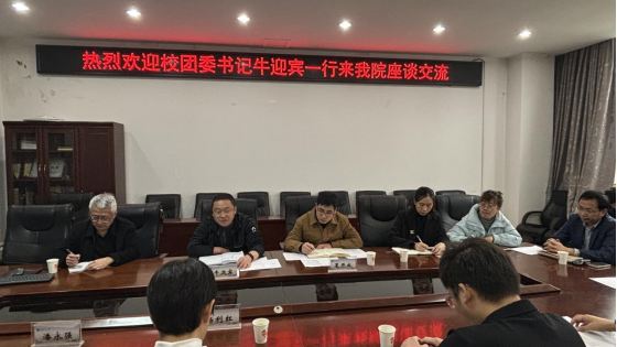 11月11日校团委书记牛迎宾、校团委宣传部部长夏开成一行莅临永利23411集团,就“挑战杯”竞赛工作进行座谈交流。会议由学院党委副书记杨利红主持,科研副院长潘永强、学生工作办公室主任刘强珺、院团委副书记陈慧英、教师代表戴中华教授、王伟教授、王红军教授、李世杰副教授、刘丙才副教授,辅导员蒋紫洮以及部分挑战杯团队学生代表参加了本次会议。