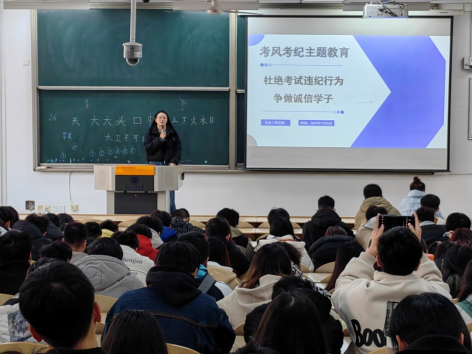 为营造公平、公正的考试环境,树立良好的考风考纪,12月6日,永利23411集团2022级在教1-101召开“明考纪 强考风 守诚信”主题年级大会,会议由2022级辅导员李俊洁主持,学工办主任刘强珺和全体2022级同学参会。