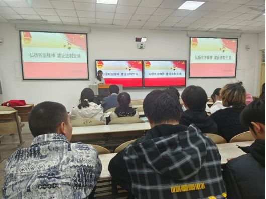 23010207班团支书给同学们讲解了宪法的重要地位、核心内容以及与日常生活的紧密联系,让同学们对宪法有了更为直观且全面的认识;23010209班全体同学观看宪法宣传视频,借助鲜活案例与丰富素材,生动呈现出宪法与日常的千丝万缕关联,点燃了同学们研习宪法的热忱;23010712班现场组织了宪法知识竞赛,同学们进行分组,围绕宪法内容展开了激烈的答题。其他各班也结合宪法与日常生活开展了多种形式的活动。