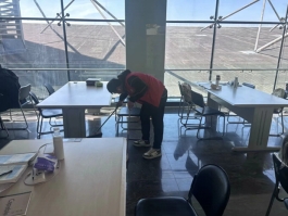 下午14点整,活动负责人简要介绍了任务分工与注意事项。志愿者们分组协作,对图书馆各区域展开全面清洁。志愿者们配合默契,动作利落。在阅览室,他们轻手轻脚整理书架,将散落的书籍按编号归类,擦拭积灰的角落;在公共区域,有人俯身清扫地面,有人仔细消毒桌椅,还有人协助馆员引导读者文明借阅。经历1个多小时的辛勤劳动,图书馆窗明几净,书籍排列井然有序,焕发出新的生机。“擦拭书架时,仿佛触摸到了知识传承的温度。”2023级志愿者徐向坤同学感慨道。