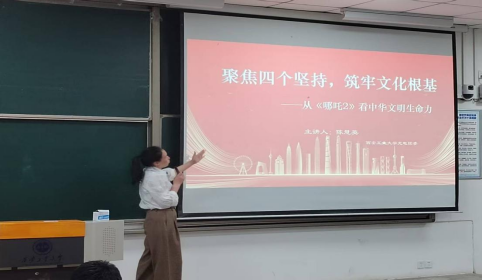 为积极响应党和国家建设社会主义文化强国的号召,引导我院青年学生深入领会“四个坚持”,增强文化自信,永利23411集团团委于4月17日在教1-102教室开展了“聚焦四个坚持,筑牢文化根基——从《哪吒2》看中华文明生命力”主题研讨会。学院团委副书记陈慧英担任本次活动主讲。
