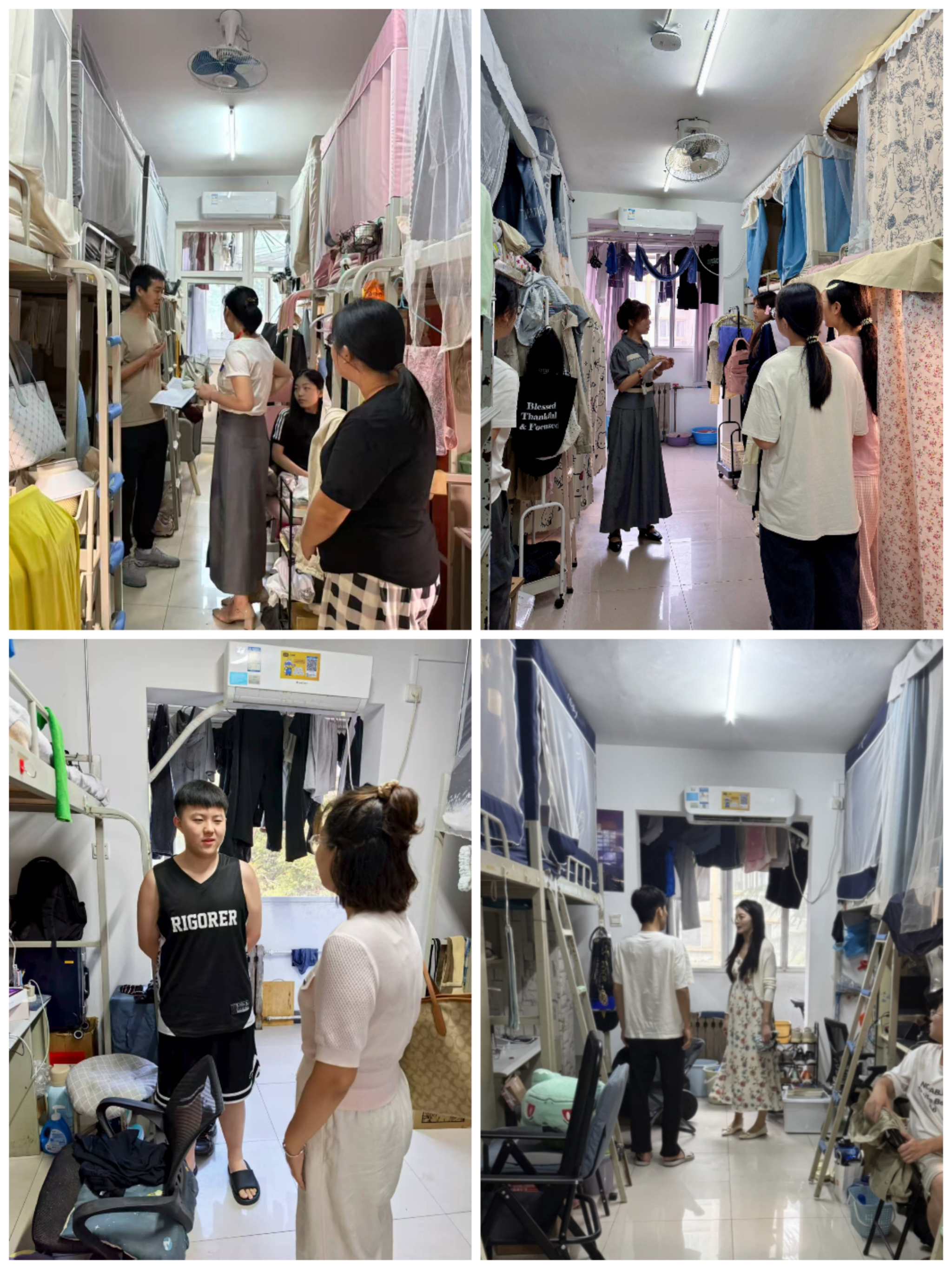 检查过程中,辅导员与同学们亲切交流,详细了解大家新学期的生活适应情况,重点强调校园安全,防电信诈骗。学院对卫生整洁、通风良好、无安全隐患的宿舍给予表扬;对存在杂物的桌面、地面、阳台等区域,辅导员现场提出整改建议,并协助学生一起整理。同学们积极响应,主动打扫,宿舍环境得到明显改善。