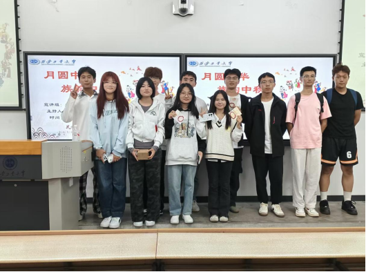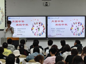 活动由几位少数民族同学介绍民族习俗拉开帷幕。来自苗族的王箫雨晴同学,结合自身经历,清晰地介绍了苗族的历史文化背景,重点分享了中秋时节苗族群众的传统习俗——部分苗族聚居地会在中秋夜举行“祭月祈福”仪式,族人会准备糯米制品、腊肉等食物,通过对歌的形式传递生活喜悦。讲解过程中,她还展示了提前准备的苗族特色银饰照片,让在场同学更直观地感受民族文化细节。随后,彝族的周童臻同学围绕彝族的中秋传统展开介绍,提到彝族在中秋前后常结合秋收场景,家人团聚时会品尝新收获的谷物制作的食品,长辈会向晚辈讲述民族故事,传承文化记忆。两位同学的介绍语言朴实、内容真实,让同学们准确了解到苗族和彝族的中秋文化特色。