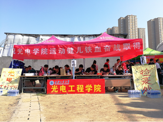 贯穿于赛场内外的还有志愿者们忙碌的身影以及高声呐喊加油的光电学子们。无论烈日炎炎还是大风天气,他们从未离开,帮助维持现场秩序,为参赛人员送水,做好后勤工作。
