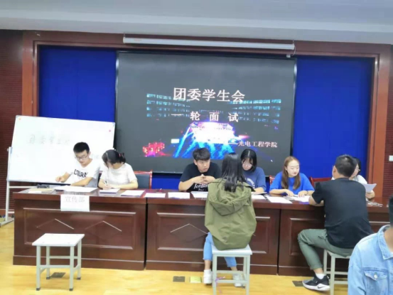 9月10日下午18点,我院2019级团委学生会纳新第一轮面试在工6-402举行。参加本次面试的评委团由我院2017、2018级团委学生会主席团成员及各部门负责人组成。