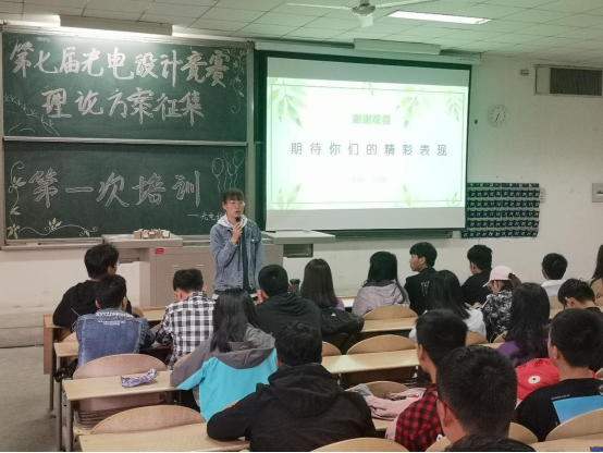 4月3日18点,光电科协在教1-104举行第七届光电设计竞赛理论方案第一次培训。本次培训由王书敏负责讲解,科协全体干事及全体参赛队员参加了此次培训。