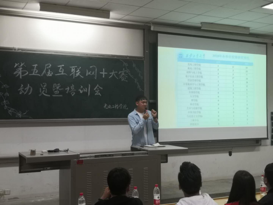 为推动我校第五届“互联网+”大学生创新创业大赛的顺利开展,激发我院学生创新创业的热情,4月29日18点,我院在教1-201举办第五届“互联网+”大学生创新创业大赛动员暨培训会。参加会议的有院团委书记朱先彬、辅导员孙君、雷浩然、学生会主席团成员及全体参赛学生。会议还特邀校团委社会实践部科长杨海斌、校科协主席赵筱涵参会。会议由朱先彬主持。