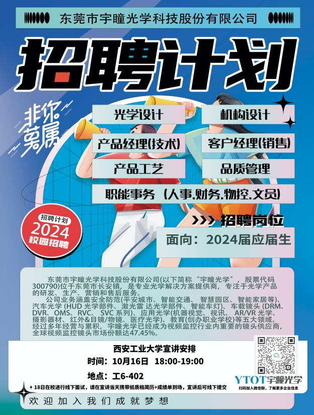 东莞市宇瞳光学科技股份有限公司招聘(10月16日18:00-19:00,工6-402)