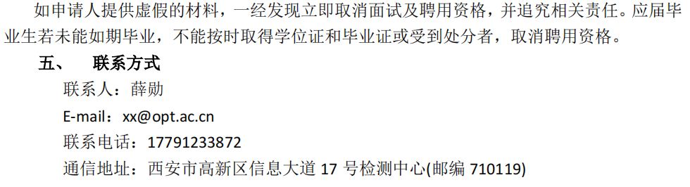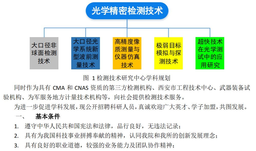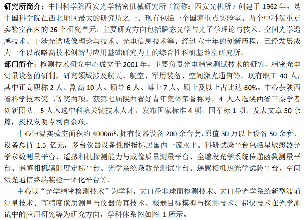 中国科学院西安光学精密机械研究所检测技术研究中心招聘公告