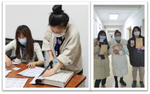 为了让学生封宿不担忧,出入有保障。学院全体学工人员加班加点在3小时内完成14个时间段,共3920张浴室出入证的设计、打印、盖章和剪裁工作,顺利保证当晚将所有浴室出入证发放到相应学生手中;此外,老师们为学生按时、按点的发放一周的宿舍出入证。