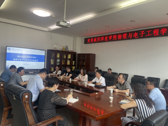 咸阳师范学院物理与电子工程学院何东山院长就物电学院的发展历程、师资队伍建设、人才引进、科学研究等方面进行了详细介绍。袁月副书记指出近年来学院高速发展,需要更多的交流合作,为改革发展拓宽路径、夯实基础。随后双方与会人员结合工作进行了深入交流与探讨。