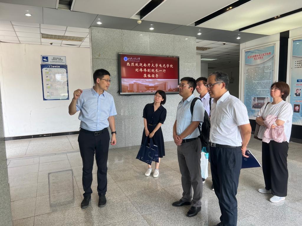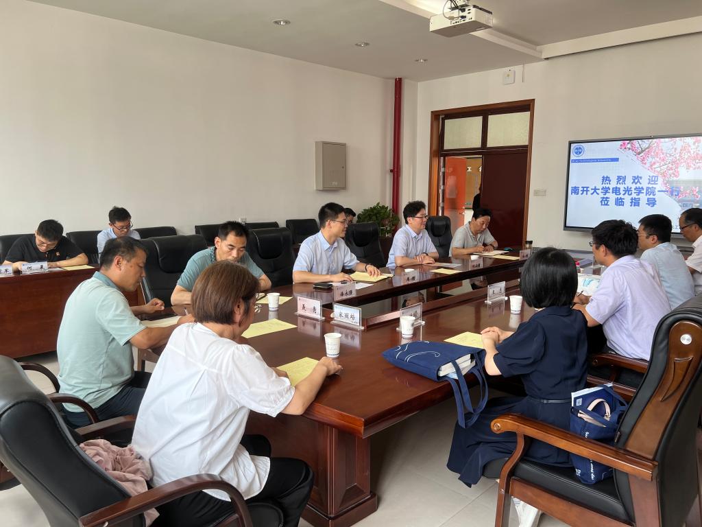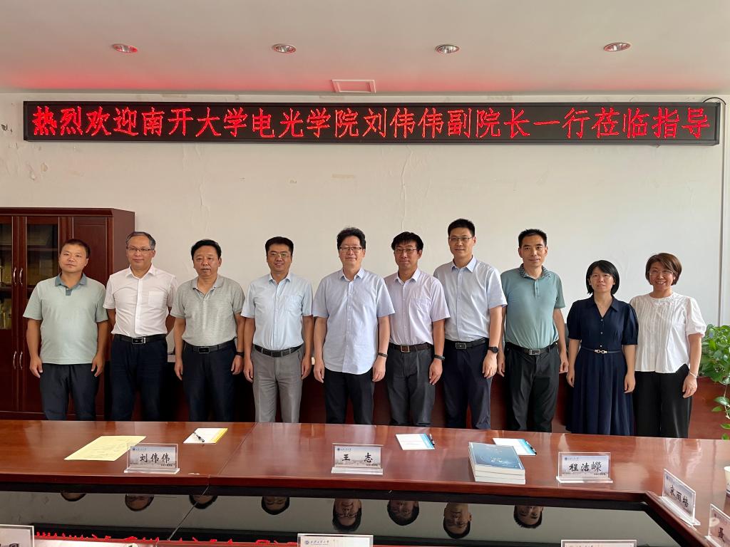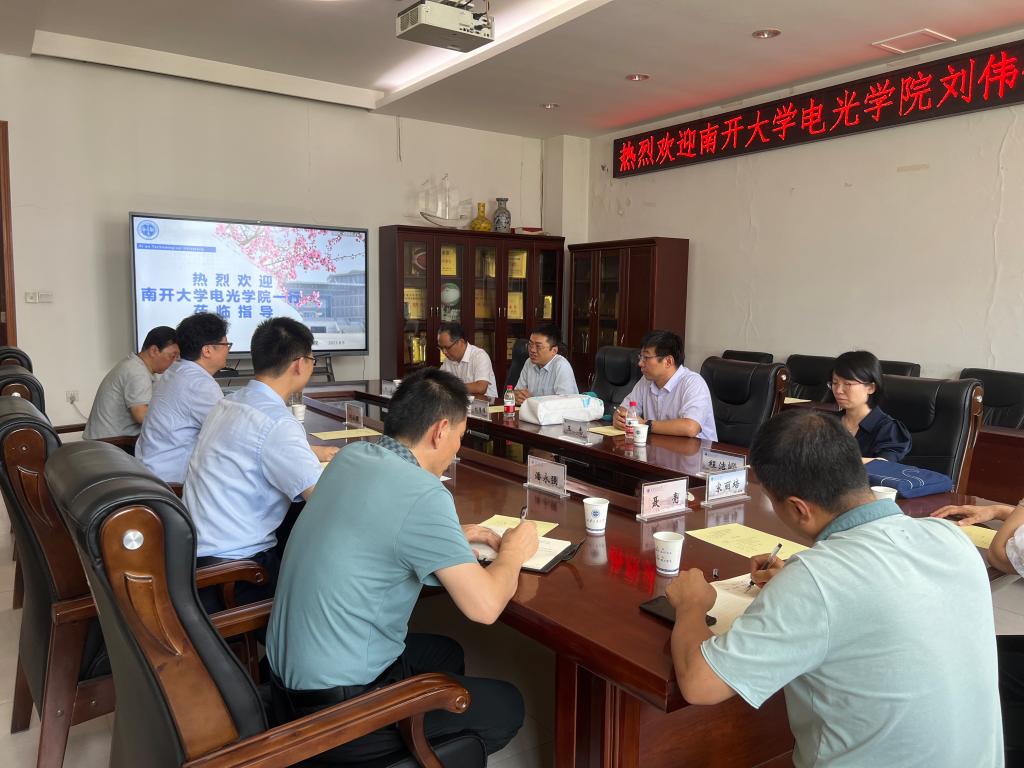 8月9日,南开大学电子信息与光学工程学院副院长、现代光学研究所(以下简称“南开大学光学所”)所长刘伟伟一行五人受邀来校调研座谈,校党委书记刘卫国出席了座谈会,双方围绕人才培养、科学研究、学科建设、党建工作等内容进行了会谈。座谈会由永利23411集团党委书记周顺主持。