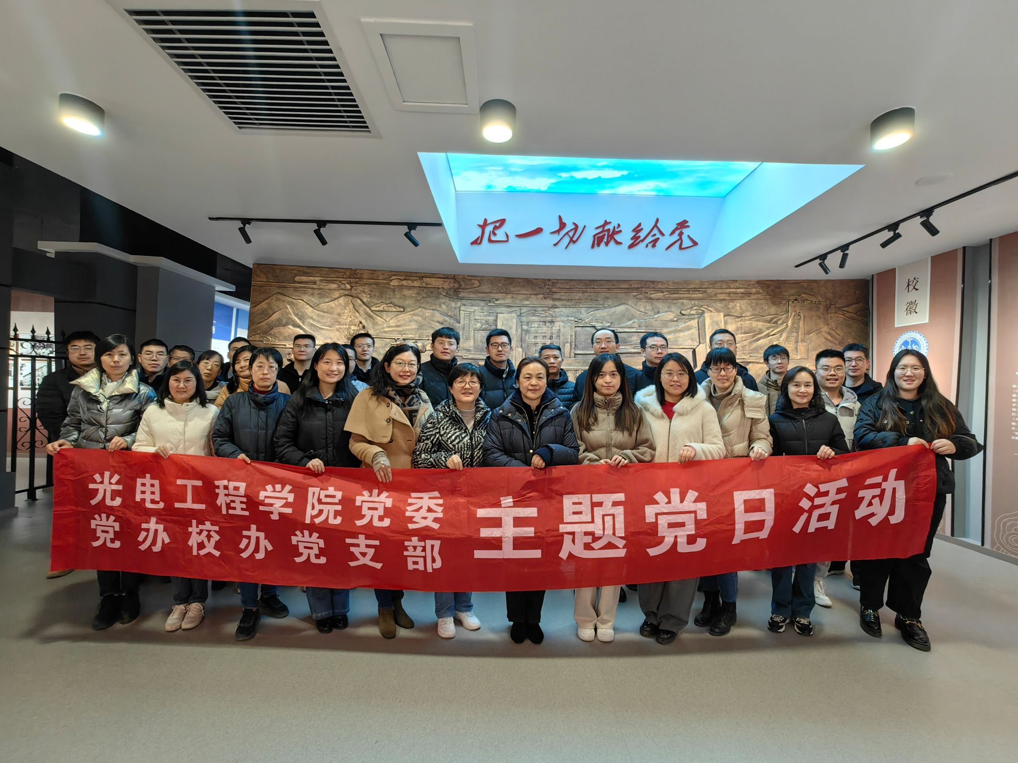为了迎接学校70周年校庆,进一步弘扬兵工精神,增强教工们的爱校荣校意识,12月27日,永利23411集团党委与党办校办党支部联合开展了参观校史馆主题党日活动。党办校办主任、党支部书记姚颖、永利23411集团党委副书记杨利红、教师代表30余人参加活动。
