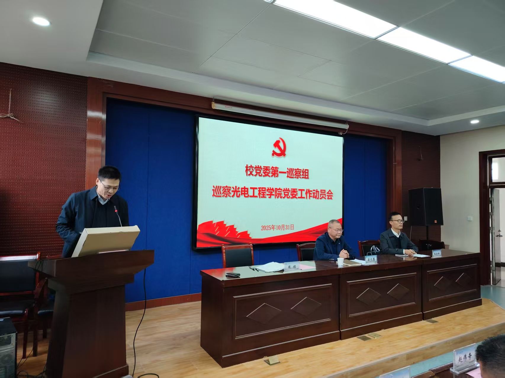 根据工作安排,2025年10月31日,校党委第一巡察组巡察永利23411集团党委工作动员会在工6-402召开。会前,校党委第一巡察组组长程新峰传达了学校第三届党委第四轮巡察工作动员部署会精神。会上,程新峰就即将开展的巡察工作作动员讲话。校党委委员、校党委巡察工作领导小组成员、巡察办主任梁闪慧就配合做好巡察工作提出要求。永利23411集团党委书记周顺主持会议并作表态发言。