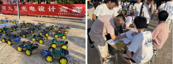 此次评比主要由光电科协竞赛部部长李璇和副部长葛艺荣进行全程跟车记录并打分。参赛选手无数次为电路图绞尽脑汁,制作时一次次的伴月而归;测试时,总会被冒出来的新问题折磨的抓耳挠腮。最终,一辆辆带着智慧与汗水的红外小车出现在了决赛的赛道之上。在此次的评比过程中,涌现出许多优秀的作品,他们的小车不仅造型美观,而且行进速度快而稳,狠狠地吸引了各位嘉宾老师和同学们的眼球。