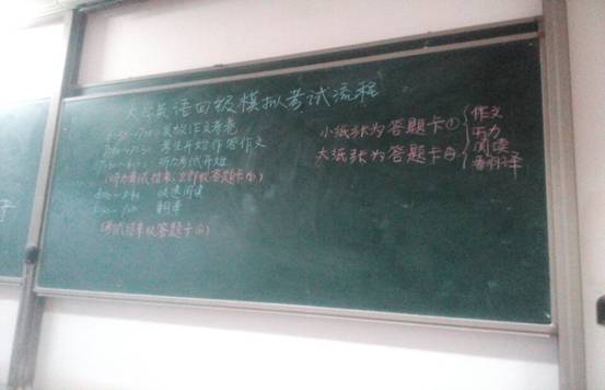 为了增加学生对英语四级考试规则的认识,提高同学们应试解题技巧。针对2014级新生,我院于2015年5月18日晚上,在教2楼举办了英语四级模拟考试。本次活动由学院团委、学生会主办,学习部承办。