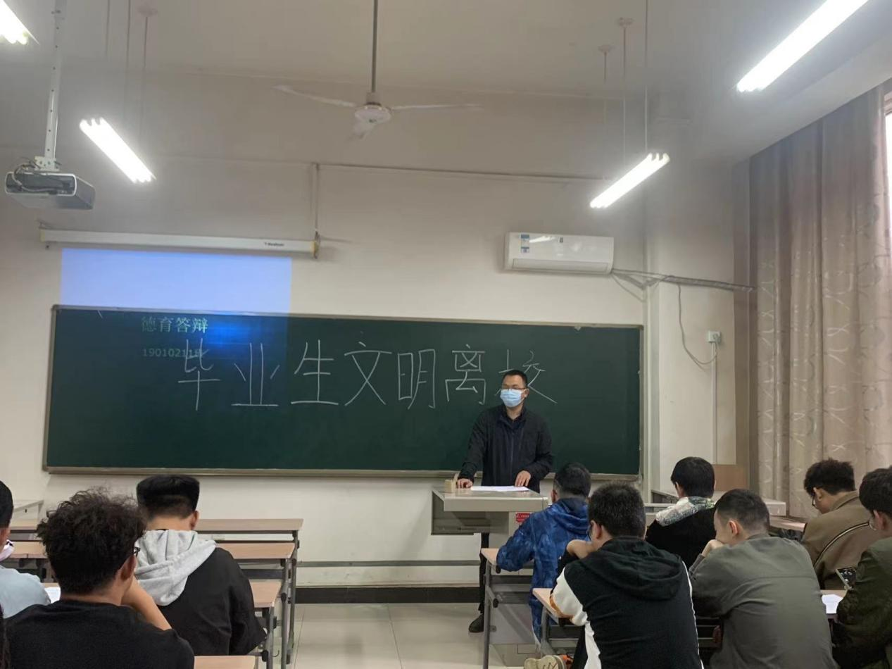 为全面学习贯彻党的二十大精神,进一步落实立德树人根本任务,为毕业生上好最后一堂“思政课”,59日至12日,永利23411集团在工6-301和工7-412组织2023届本科毕业生进行了目标教育总结答辩。毕业班辅导员雷浩然裴旭乐参加了答辩会。
