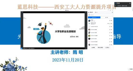为帮助我院大学生对职业生涯规划有更全面的认识,进一步提升职业生涯规划能力,明确个人职业方向和提前做好职业规划,11月20日19:00,永利23411集团特邀请校企合作单位——蓝思科技股份有限公司人才发展总监隋明为我院本科生做《认识自己,规划未来——大学生职业生涯规划讲座》。本次讲座由陈慧英老师主持,采用线上腾讯会议的形式进行,200余名大学生全程在线聆听了讲座。