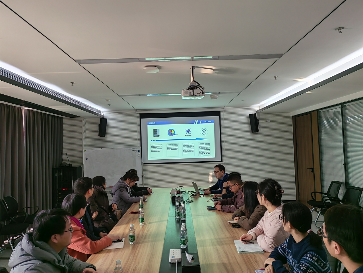 华天慧创科技(西安)有限公司户华晨副总经理对学院一行来访表示热烈欢迎。首先带领大家参观了企业的工作环境、生产车间、实验室等,详细了解了企业的发展历程、生产经营情况、市场布局、企业文化、员工福利等方面的情况。