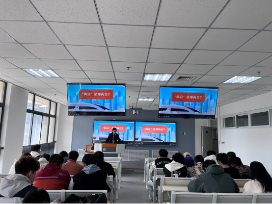 为了帮助同学们深入了解两会的相关内容,陈慧英在简单介绍目前两会召开情况后为大家播放了两会的相关视频,介绍两会的相关知识,追踪两会最新动态,特别是重点学习了今年的政府工作报告。随后,同学们结合自身的经历和实际,对报告中2023年政府工作成就、2024年经济社会发展总体要求、政府工作任务和自身的就业意向纷纷表达了感受和想法。