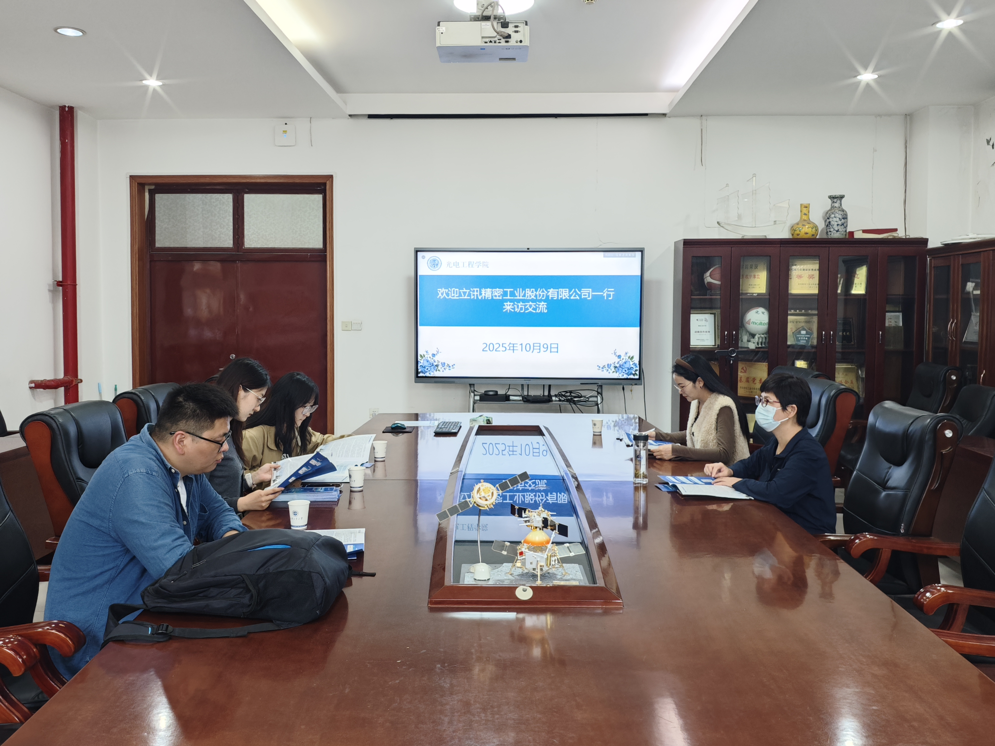 杨利红对立讯精密一行的到访表示热烈欢迎。她简要介绍了学院在学科建设、人才培养、科学研究等方面取得的丰硕成果,并着重强调了学院在光电检测、激光技术、精密仪器等领域的特色与优势。她指出,立讯精密作为全球领先的精密制造企业,其业务领域与永利23411集团的学科专业高度契合,双方合作潜力巨大。期望通过此次交流,能够将学院的科研人才优势与企业的产业平台优势相结合,在人才联合培养、技术协同攻关、实习基地建设等方面建立长期、稳定、深入的战略合作关系。
