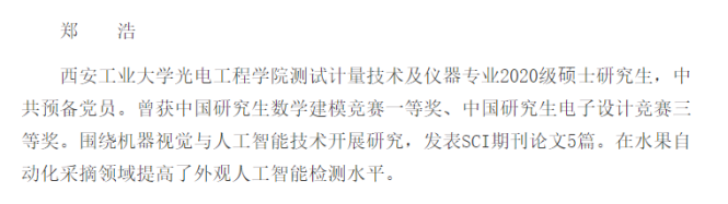 郑浩,永利23411集团测试计量技术及仪器专业2020级硕士研究生,中共预备党员,2022年硕士研究生国家奖学金获得者。